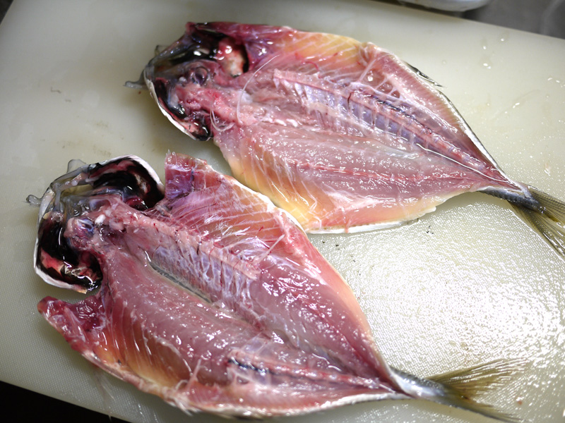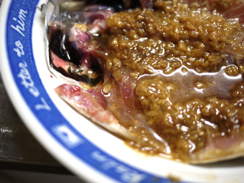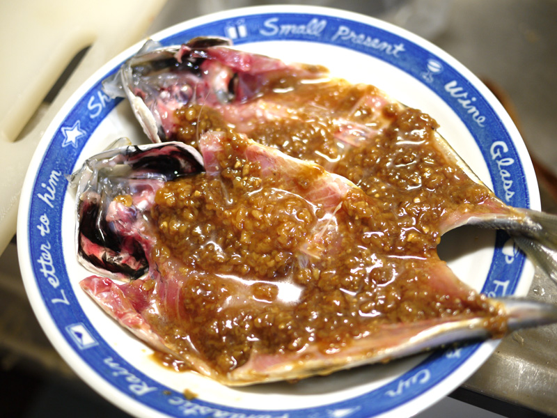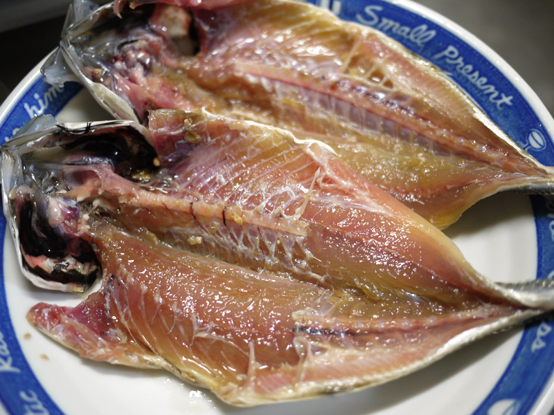 アジが売ってたので購入! 古い塩麹でアジの開きを作ることに。 アジを開いて塩麹を乗せる… 開きが下手くそなのはご愛嬌。 物足りないので更に塩麹を乗せて、ラップをして冷蔵庫で2時間置きます。 2時間後のアジです。 ちょっと水が出てますね。 2時間漬け終わったアジは水洗いして塩麹を全部流し、キッチンペーパーで拭いて干します。 今回は夜に漬けて、翌日の昼頃取り込みました。 右は取り込む直前のアジです。 表面がツヤツヤですが、指で触ると乾いているのがわかります。 グリルでしっかり焼いて食べました。 味もちょうどいい具合に付いていて、すごく美味しい ![]() これで古い塩麹で美味しい料理が作れることがわかりました♪ どんどん使っていきたいです。 そういえば…イブニングで連載中の「おせん」によると。本来の塩麹は 作る時に使う麹と塩の量は「目方」ではなく「嵩(かさ)」で 10対3 だそうです。 これを目方に直すと、 麹1kgに対して塩が約600g という量だそうで。 世の中に出回っている塩麹の作り方では 麹1kgに塩300g なので保存がききにくいとのこと。 私もまた新しく塩麹を仕込む際(2月頭予定)にはそのように作ることにします♪ |
