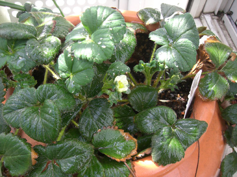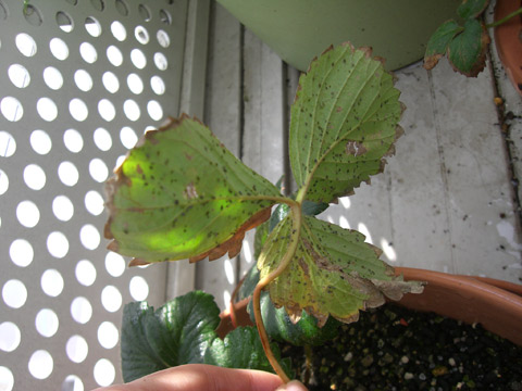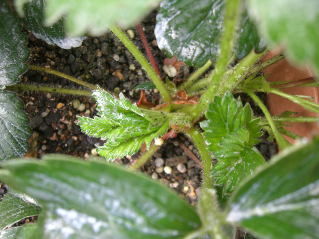 に気づきました。まだ一個だけです。 ↑枯葉などを抜いたのですが、あんまり変わらないかも…。 ところでもう一株、以前買って植えておいた「ビッグスイート」なるちょっと高かったイチゴ株。 こちらも元気に葉を開いているのですが…… 葉っぱの裏に……… びっしりのアブラムシがっ 怖い…どうしたらいいんだろう… ![]() |
