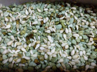 小鉢の中にセットに付いてた石(細かい砂利?)を敷く。 ↓ 水をひたひたに入れる。 ↓ そこにゴマをぱらぱらと蒔く。 ↓ 暗いところ(押入れ)に突っ込んで完了。 --------おさらいここまで-------- ちょうど24時間くらい経過したので見てみると… 種から一斉に、白い何かが出ています。 出ている向きが下向きなので、たぶん根っこ。 こんな早く出るんですねー。 びっくりです。 ちょっと嬉しかった! PR |