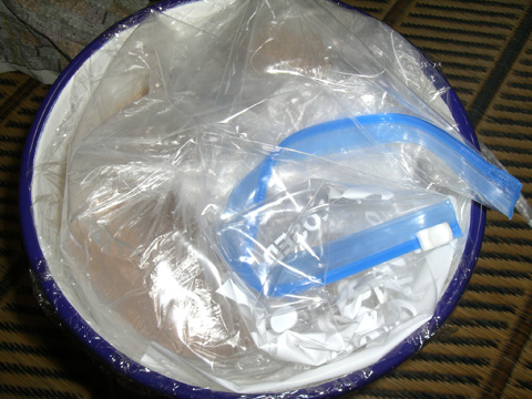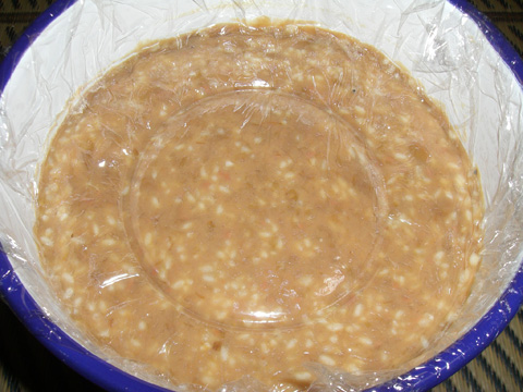 (丸いのは重しとして乗せていたお皿の跡) 少し色が濃くなっている感じです ![]() カビが怖いので、ラップははずしてません。 現時点でカビの繁殖はないので、一安心です ![]() 今回は重石として水の入ったビニールを乗せました。 ビニールで巻いて、さらにジップロックに入れたので、多分大丈夫。 順調順調 ![]() PR |