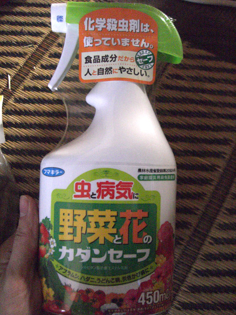 フマキラーの 野菜と花のカダンセーフ 化学殺虫剤は使っていません よしこれだ!! 調べてみると、どうやら成分で虫を殺すというよりも、この液体で虫を窒息死させるというものらしい…。 お?それって、アブラムシが牛乳で窒息死するのと同じ? よくわかりませんが、さっき吹きかけてきたので明日はどうなってるか…… ちなみに成分はソルビタン脂肪酸エステル0.14%、水等99.86%と記載されています。 水等ってなに ![]() 水以外も入ってるのかな… ![]() PR |