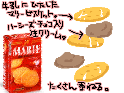 ![]() たまに作るんですが、今回はクリスマスケーキとして作ったよ。 まずは大好物のハーシーズのチョコクリーム。 温めた牛乳に入れると最高。 このチョコレートを生クリームと混ぜてホイップ。 チョコの量は適当に入れて、味見をしつつ好みの味にするー ![]() 次は美味しいマリービスケットを牛乳にひたして、チョコ生クリームと交互に重ねていくぜ~ ![]() べちゃべちゃした作業。 好きなだけ重ねたら残りのチョコ生クリームをかけてビスケットを隠してしまうのです ![]() 形を整えて、フォークで模様をつけたら ブッシュドノエルもどきの完成~ ![]() 上に適当に飾りつけとかしたらもっとそれっぽくなります。 作ってすぐ食べるよりも一晩冷蔵庫で寝かせたほうが、ビスケットが柔らかくなって超美味しいのですー ![]() ![]() 大好物。 最高。 でも買ってきたケーキもあるよ。 今日はたくさん食べるよ!!!!! PR |