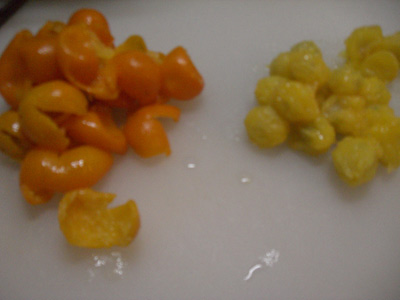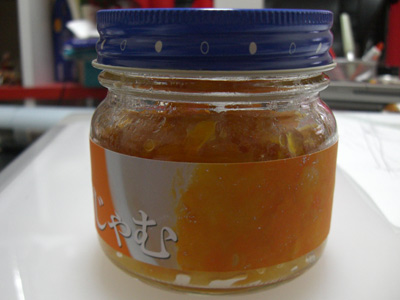 甘露煮は…美味しくなかった時がつらいので、またいつか~。 金柑をお湯で煮ます。 皮が破れてきたところで水に取ります。 煮た金柑は皮と身が離れやすいのでつるつる剥けます ![]() そうやって分けて、種は全部抜いちゃいます。 身はみじん切り、皮は細切りにします。 今回は甘さを強めで作りたかったので、正味の3分の1の量のグラニュー糖と煮ました。 (正味150gあったので、グラニュー糖は50g) 綺麗な色に煮えました ![]() 煮沸消毒したビンに詰めて完成~ ![]() ![]() 遊びでラベルも作ってビンに貼りました ![]() これがかなりいい出来で、なんかお店で売ってそうな感じになりましたよ~ ![]() ぜひ画像をクリックして大きい画像も見て欲しいです!! でもまあ、ダイエット中の私は食べないので人にあげます。 PR |