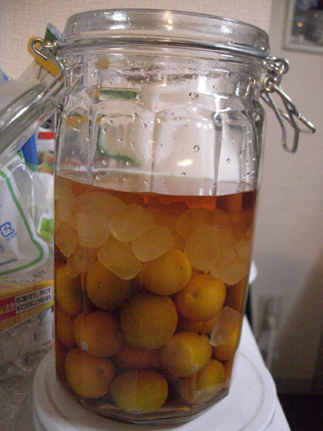6月3日に漬けた梅酒と6月4日に漬けた梅酒です。 これがなんだかすごいことになってました。 上の2つはホワイトリカーで漬けた梅酒です。 いい色が出てます。 問題はブランデーの梅酒…… 梅のエキスが絞られまくりです。 同じ時期に漬けたのに、こうも変わるとは… 一人で驚いていました ![]() |