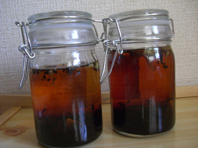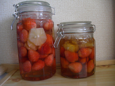 金柑酒は全部浮いてます ![]() ラップの落し蓋をしています。 下のほうに氷砂糖の溶けたのが溜まってるんですが、混ぜた方がいいのかと悩み中。 ちょっと金柑の香りはします ![]() 紅茶酒はよくわからないです… ![]() 茶葉には水分がほとんどないのでアルコールが薄まっておらず、アルコール臭の中になんとなく紅茶の香りが… レモン酒は果実も下にしっかり沈んでいて、紅茶酒共々手間が要りません ![]() レモンの香りが強くて素晴らしい~ ![]() イチゴ酒は、イチゴ ![]() ![]() 一緒に入れたレモンが重石になってくれるかと思ったのですが、無理でしたー。 イチゴ酒は両方ともラップの落し蓋をしてます。 もうお酒が赤く染まっています ![]() そして果実は白っぽく変化中。 香りはもう最高 ![]() ![]() 漬けてからまだ1週間も経ってないのに、もう待ちきれない気持ち~ ![]() ![]() |