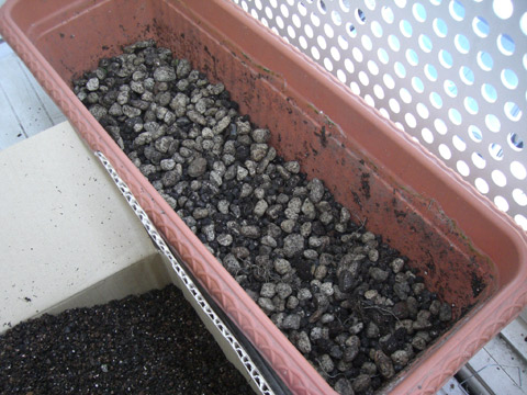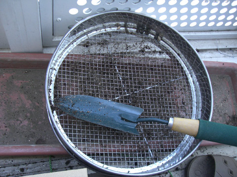 室内に置いていたんですが、やっぱり外のほうがいいだろうというのと、土に埋めておけば乾燥も防げそうだからということ。 っていうか、まだまだ小さいのばっかりなのでもう少し大きく育ってもらわないとなんにも出来ないと思ったのでー。 ふるいを使って、土の中の根っこなんかを取り除きます。 きれいにした土。 プランターの底に改めて石を敷いて… 生き埋めに!!!! しばらくは水遣り以外は放置の方向です。 PR |