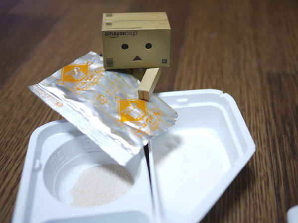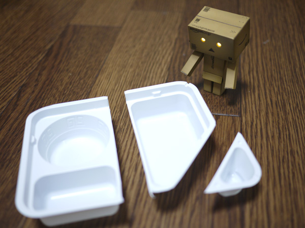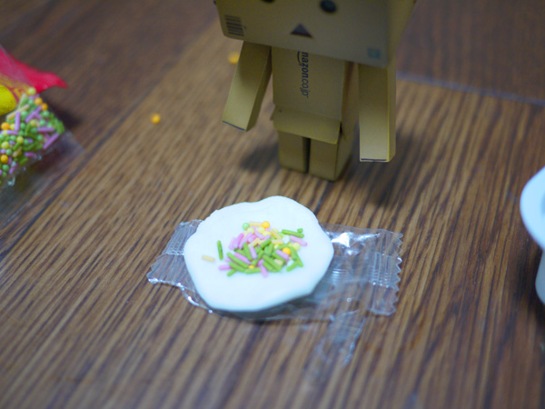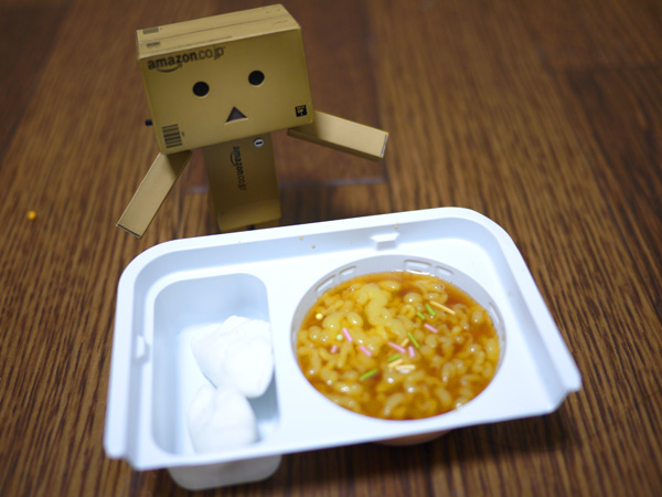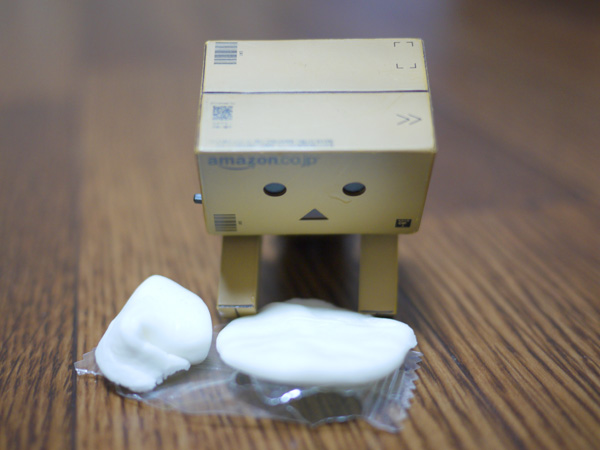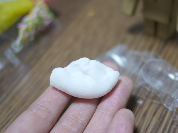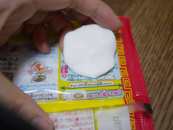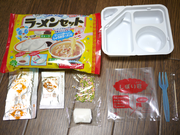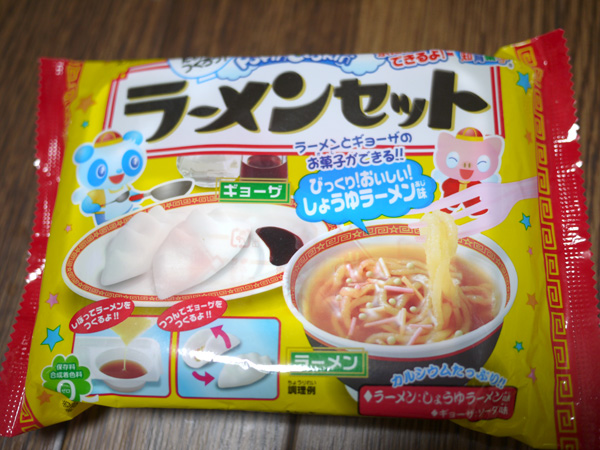 ねるねるねるねが一番有名だけど、それ以外にもたくさんのお菓子がありますよ。 今日はそんなクラシエフーズから発売されている知育菓子 「たのしくつくろう! Popin'Cookin' ラーメンセット」 を作ってみました。 パッケージはこんな感じで、少し大きめです。 180×120mmくらい ねるねるねるねだとトレーに付いている水を計る三角部分が手で切れるけど、この商品だとはさみを使わないと切れない状態。 友達のダンボーさんが手伝ってくれました。 トレーを切って、「スープのもと」と「麺のもと」をトレーに入れて… スープはトレーの内側の線まで、麺には三角カップ1杯の水を……とここで間違えてカップ2杯の水を入れてしまいました! 私ではありません、ダンボーさんが間違えたのです。 気にせずしっかり混ぜます。 スープのほうは本物のラーメンスープの匂いです。 麺のほうは特に匂いもなく…味は少し小麦粉系。 つまようじで穴を開けた絞り袋に「麺のもと」を詰めます。 水の量を間違えたため、実際搾り出した時にやたら縮れ麺状態になる上、やっぱりちょっと多い感じ。 次は餃子作り。 餃子の皮はどうやらソフトキャンディ(ハイチュウ的なもの)のようです。 これを2つに分けて丸く伸ばす、頑張れダンボーさん。 伸ばした皮に具を詰めて完成。 ダンボーさんは下手くそですね。 ちなみに、餃子の皮の大きさの目安が袋の後ろに書いてありました。わかりやすい! 完成! ダンボーさんと食べます。 麺は水の量を失敗した割には違和感なく…というか普通のラーメンみたい! すごくラーメンです。 頑張ったからか、なんだか美味しく感じるほど。 餃子は甘くて何事も無く無難に美味しいです。 パッケージ写真でラーメンの上に餃子の皮にも浸かったトッピングがかかっていたのでかけて食べたのですが、トッピングは甘いのでラーメンに全然合いません。 かけるならほんの少しかけて味を見て、好みで増やしたりするのが無難。 ごちそうさまでした。 よく出来たお菓子でした。 まさかラーメンの方は本当にしょっぱいとは…。 でも思ってたよりゲテモノ感も無く、作る楽しさも結構大きいです。 これからもクラシエフーズには変で楽しいお菓子を出してくれることを期待しています。 |