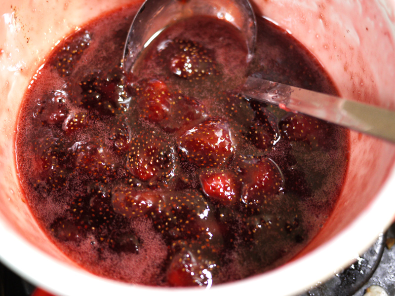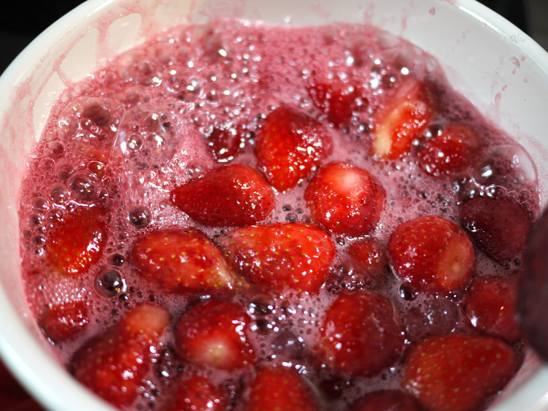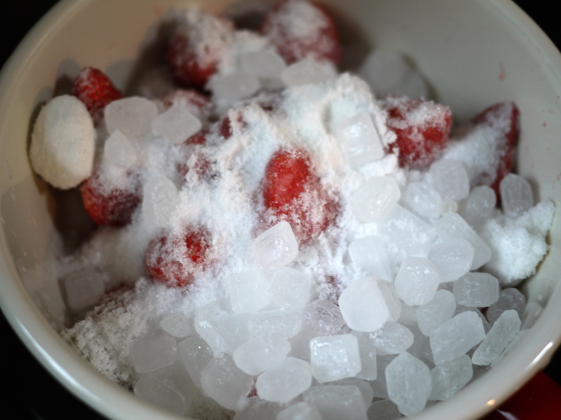 へたを取って洗ったイチゴ~ ![]() 大体600gくらいあります。 グラニュー糖を450g…って、半分くらい足りない ![]() 大丈夫なのか不安だけど、氷砂糖で代用しました ![]() ![]() このまま三時間以上放置! 弱火でしばらく煮て、水分が出てきたら中火にしてあくを取りながら煮詰める (って本には書いてあった)。 でもすごくボコボコしだしてちょっと恐怖。 あくを取っていると、その泡がもったいないなあという気分になります。 「きのう何食べた?」って漫画で、紅茶に入れよう~というようなアイデアがあったので真似しました ![]() そして煮詰めていくと…… なんだかジャムらしからぬ香ばしい匂いが…… 焦げた。 煮沸消毒したビンに詰めて、なんだか少し香ばしいジャムが完成~ ![]() まずくはないけど…せっかく作ったのに残念です ![]() PR |